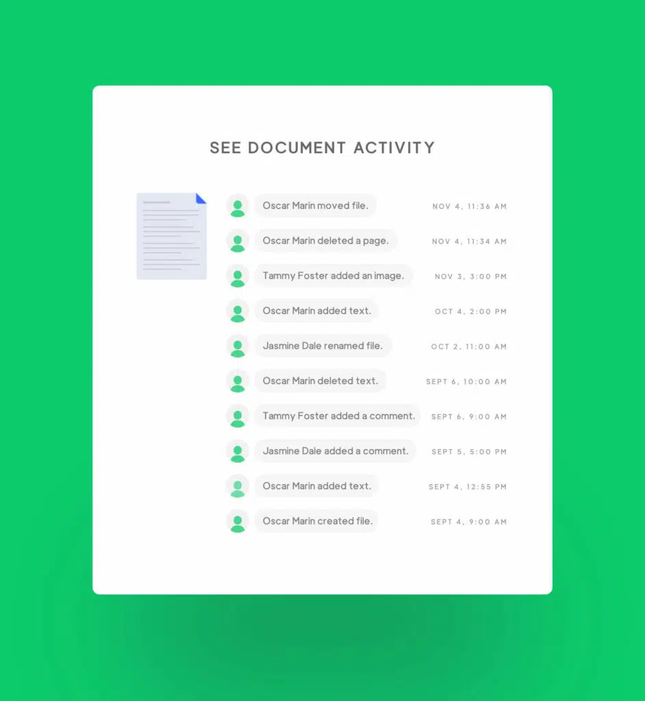 Live updates of your documents’ history keep you informed any time you need them.